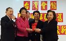 (紐約.羊展恬14日訊)台灣會館日前舉行新春團拜暨新舊理事長交接典禮,在創會理事長陳隆豐(左一)主持及駐紐約台北經文處處長徐儷文(右二)監誓下,前理事長陳春蘭(左二)將印信交給新任理事長方秀蓉(右一)。