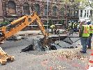 (明報21日訊)在距離本週梅西感恩節遊行活動不遠的上西區一角,因主水管的破裂致地面下陷,形成巨大裂口。這一塌陷裂口位於中央公園西(Central Park West)和哥倫比亞大道(Columbus Avenue)之間的西82街(West 82nd Street),塌陷裂口長20呎,寬10呎。