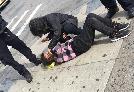 (明報28日訊)法拉盛市中心昨日發生一起搶劫案件,3名非裔青年在大白天向一家位於緬街近羅斯福大道的華人飾品店行搶,該店老闆及老闆娘因追趕搶匪卻遭到匪徒打傷,老闆娘被匪徒擊倒在地受傷,手摀面部(圖TY0428c1,本報讀者提供)。多名路人見狀報警後,109分局警察和救護車隨後趕到,將受害者送往附近醫院救治。