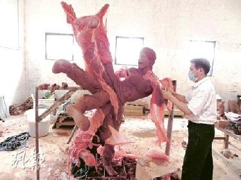 佛山正趕製4米高的李小龍無影腳造型雕塑。(圖:香港明報)