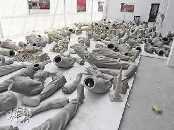 50個李小龍陶瓷雕像將會被送往上海世博展出,圖為雕像的組件。(圖:香港明報)