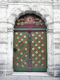 古城Pikk大街會看見這搶眼的門,其實是House of the Brotherhood of BlackHeads,這座文藝復興色彩的門是1640年的產物,裡面有大禮堂,但並不開放。(圖:香港明報)