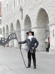 塔林市廳廣場一帶不時會看見一些穿中古服飾的人,有的是商店或餐廳的員工,有的是藝術表演者。(圖:香港明報)