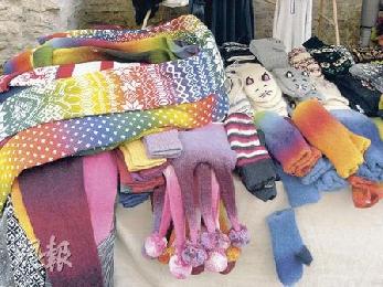 街頭賣的帽子和頸巾,非常保暖。(圖:香港明報)
