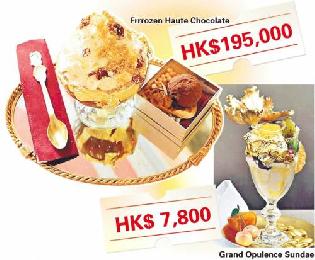 (美國)紐約著名餐廳Serendipity3推出兩款矜貴甜品,一是售近8000港元的金箔雪糕新地,另一款則是由金箔巧克力製作的全球最貴甜品,每客售價達2.5萬美元。