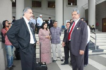 旅遊部前總監米查(右)一早抵達法庭,不過在下午時分才被控上庭。(圖:馬來西亞星洲日報)