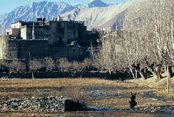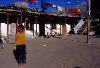 走得越高,看到的村子就越是荒涼。比如Jharkot是其中一個印象非常深刻的村子,孤傲地依附在光禿禿的褐色山體之中,石頭砌成的磚房相伴著只剩下枯枝的樹木,如此蕭瑟,也如此壯闊,讓人看了激動不已。我只是不明白,人為什麼要在如此苛刻的環境建立家園?