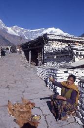 也不是所有村子都蕭瑟一片,像Marpha,種滿了蘋果樹,村裡也散發活絡氣氛,陽光充沛的日子,走在村裡的羊腸小徑,或在路邊攤買爽口的蘋果,就很愜意。如果你喜歡與蘋果有關的食物,Marpha可以滿足你,你可以在此嘗到蘋果派、蘋果蛋糕、蘋果茶、蘋果點心……