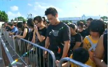 司儀逐一讀出康泰團遇難港人的名字,眾人一起默哀3分鐘,眾人神情肅穆。大批市民週四早上到場參加默哀儀式,他們均神情哀傷,有人忍不住流淚。