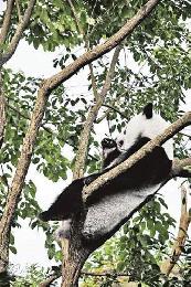 • 成熟的大熊貓在樹上“表演”做白日夢,遊客圍觀度不亞於活潑的幼熊貓。(圖:香港明報)