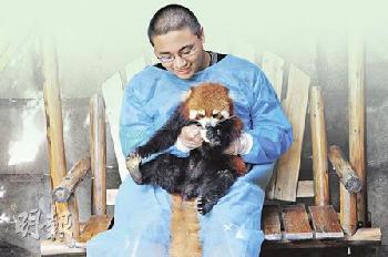 • 熊貓基地內還飼養了小熊貓,同樣可供抱抱拍照,費用便宜多了,100人民幣,也允許旁觀者參觀。(圖:香港明報)