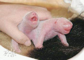 • 初出生的熊貓沒有黑白毛色,約到第十天起長毛,一個月才長出大家熟悉的黑白毛色。熊貓基地內不停播放關於熊貓紀錄片,講述它們由懷孕到生小孩的故事。(資料圖片)(圖:香港明報)