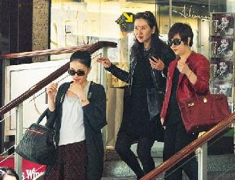 在美容院逗留個半個小時,王菲便和兩位女性朋友下樓,3人邊走邊雀躍討論剛才打針的事,紅衣女郎對阿菲說:“不覺得痛,真的不錯啊!”而黑衣友人眉心還貼有膠布(箭嘴)。