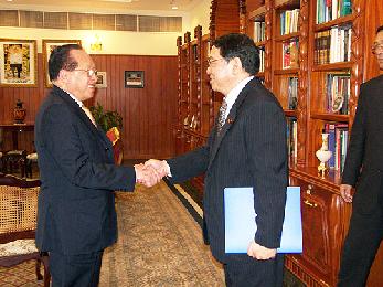 日本外交部副部長藤村修(Osamu Fujimura)於9月10日下午3時,前往外交部會見副總理兼外交部長何南豐,雙方就日本和湄公河區域合作關係、全球氣候變化和審紅庭運作問題進行討論。