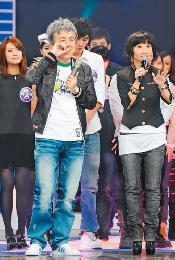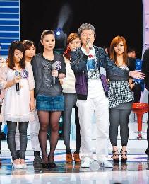 張宇( 前左)落淚與隊員一同離開星光舞台,陶子( 右) 要他20強大改造時再回來。