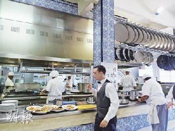 店內超大的開放式廚房,讓入門客人都有機會一覽佳肴製作過程。(圖:香港明報)