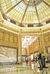 和平飯店的中庭,成為遊客的獵影景點之一。(圖:香港明報)