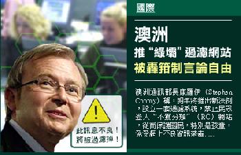 (澳洲)中國政府今年中提出強制境內銷售電腦預裝過濾軟件“綠壩”,引來強烈反彈,計劃最終擱置。未料半年後,澳洲週二(12月15日)也提出類似計劃,可能成為首個立法指明要過濾網上內容的西方國家,馬上掀起箝制言論自由的批評。