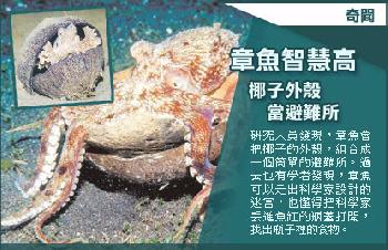 事實上,過去也有學者發現,章魚可以走出科學家設計的迷宮,也懂得把科學家丟進魚缸的瓶蓋打開,找出瓶子裡的食物。(大馬中國報)