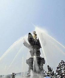九龍灌浴每天表演4次,噴出水柱有約20多米高。(圖:香港明報)