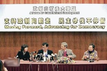(香港)由全國人大代表、工聯會會長鄭耀棠牽頭的“政制向前走大聯盟”週四(12月17日)成立,公佈包含各界發起人的96人名單,當中包括行政會議召集人梁振英、全國政協常委余國春、陳永棋等,商界則有九龍倉集團主席吳光正等。鄭耀棠表示,希望藉組織推動政制向前走,稍後會舉辦諮詢會等,亦會發動市民在網上簽名支持。