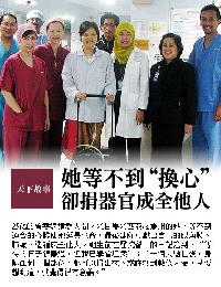 今年2月,巴生一名華裔婦女陳美玉腦死捐出5個器官,不過其心臟卻不適合期待換心獲新生的曾雯妮。曾雯妮表示儘管陳美玉的心臟不適合自己,但她還是會耐心地等待適合的心臟進行移植。