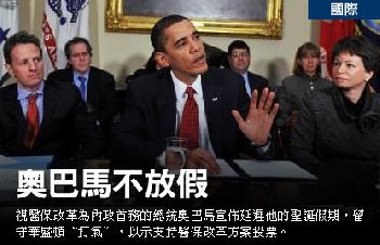 (美國)美國參議院定於香港時間週三(12月23日)晚上9時(美東時間週四(12月24日)早上8時)就醫療保險改革方案進行投票,預料將順利通過。視醫保改革為內政首務的總統奧巴馬已延遲聖誕假期,留守華盛頓“打氣”。