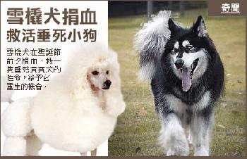 她表示,當天狗主和另一名店主就帶了2歲多的雪橇犬去捐血,成功地將大約8歲的貴賓犬救活。(大馬南洋商報)