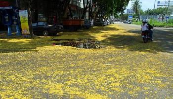 黃葉盛開,灑落滿地,來關丹也可賞花。(圖:馬來西亞星洲日報)