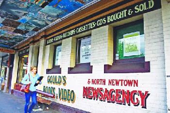 Gould's書店外簷篷的海報montage和油漆髹上的字樣,分別有1960、70年代的嬉皮味,和美國西部店舖的味道。(圖:香港明報)