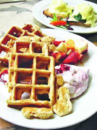 全天候早餐包括華夫餅(12.5澳元,約12.2美元)和eggs benedict(14.5澳元,約14.2美元),全部新鮮味美。(圖:香港明報)