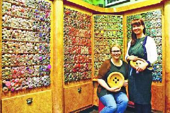 店主Lucy(左)和店員Brooke(右)對店內過萬五款鈕扣背後的故事,都瞭如指掌。(圖:香港明報)