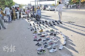有趣的鞋檔,鞋子都放在地上,每款只有一對,也分不清是新的還是舊的。(圖:香港明報)