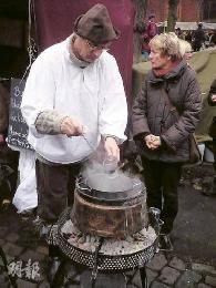 呂訥堡聖誕市集有中古時代打扮的人在煮熱紅酒。(圖:香港明報)