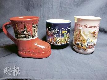 盛熱紅酒的瓷杯,瓷杯另收1歐元按金,如果不取回按金,便可據為己有作紀念品。(圖:香港明報)