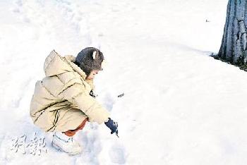 小島上的積雪厚得可以寫字。(圖:香港明報)