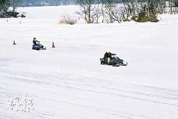 疾馳於冰湖上的雪地摩托車。(圖:香港明報)