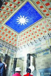 祭堂內頂部的青天白日旗以花瓷鑲嵌,顏色鮮艷。(圖:香港明報)