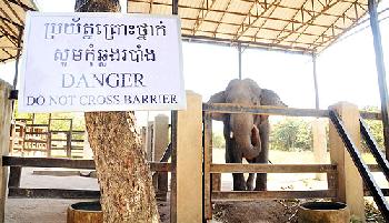 (柬埔寨)“殺人象”──“山波”(Sambo)在“新家”居住了將近一週後,目前情緒已穩定下來,並成為新的“動物明星”。