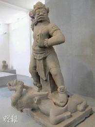 這個石刻神像是神廟的守護神Dvarapalas,大口大鼻,腳踏水牛,展示力量。(圖:香港明報)