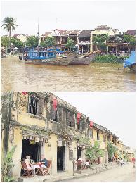 會安古鎮,沿秋盤河的食店掛上燈籠,樓上還可以供住宿。(圖:香港明報)