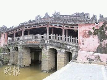 日本橋,建於18世紀,橋一端連接中國人居住區,另一端連接日本人區。橋身建有神廟,據說有一隻怪獸的頭在印度,身在越南,尾巴在日本,當它身軀移動時會帶來地震洪水,建橋於此是要鎖它的穴道,讓它不能動彈。(圖:香港明報)