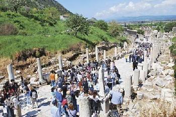 以弗所的古希臘羅馬古蹟,擠擁度直逼香港鬧市街頭。(圖:香港明報)