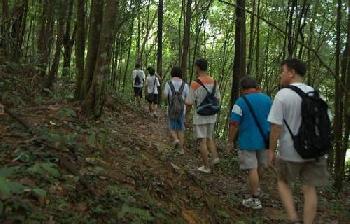 “在晨霧迷漫中,一批背包客聯袂走過鄉間小路、踏著青青湖畔草、遠足到森林深處,在高崗上眺望湖光山色,享受清涼舒爽的空氣。