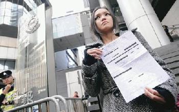 約20名市民包括社民連成員週六下午到警察總部外抗議,要求釋放陳巧文,約下午4時陳巧文獲准保釋。