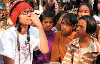 曾玉萍在泰國的清佬,和當地兒童重拾尋古的傳統遊戲。(圖:大馬光明日報)