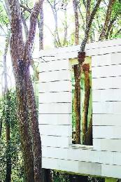 樹也Villa號稱建造期間無損一棵樹,只會以建築來遷就樹木,如這個為樹而開的洞。(圖:香港明報)