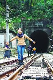 寒假期間,不少遊人都愛到勝興車站,踏著蒸汽火車昔日的軌道。(圖:香港明報)