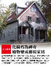 (美國)德州建築師丹.菲利普斯(Dan Phillips)將垃圾轉化成巧妙的藝術家居,利用殘餘的木塊拼湊出繁複的地面圖案,象牙色的骨頭成了廚房台面,屋頂則是以廢棄車牌製成的。