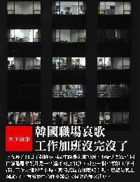 (韓國)朝九晚五的日子對許多國家人民來說是家常便飯,但對大部分韓國白領階層來說卻是一個遙不可及的夢。即使一個平常的工作日都得工作長達10個小時,更何況還有加班呢!瞧,已經是晚上8點鐘了,首爾市中心許多辦公大樓依然燈火通明。